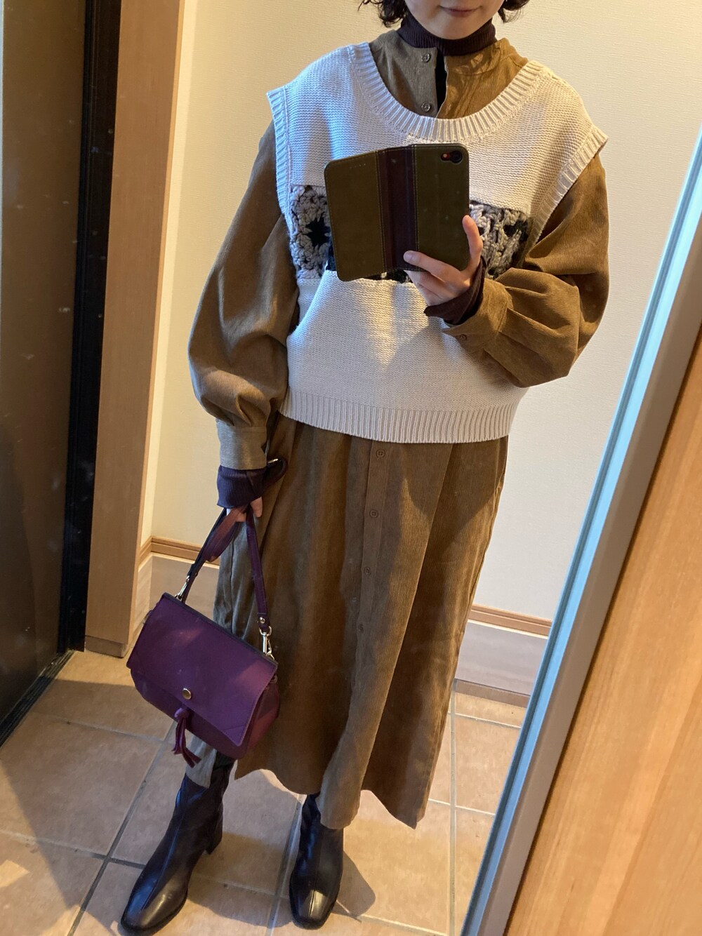 うっちーのワンピース「さっと着てコーデが完成!楽ちんに秋冬気分高まる 羽織りにも便利なコーデュロイワンピース」を使ったコーディネート