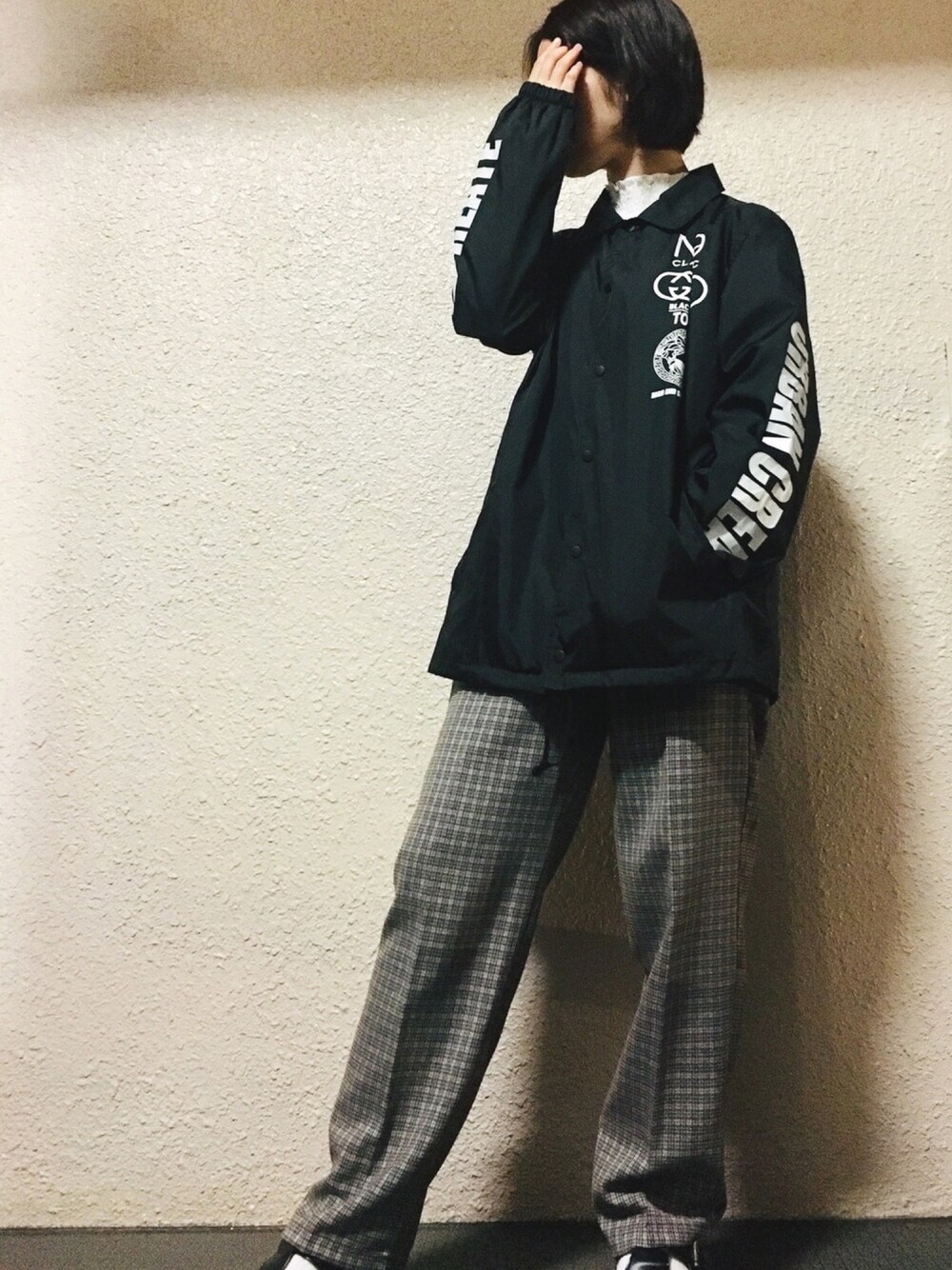 コーチジャケットはボタン全締め派です😌 flowerのチェックパンツヘビロテ中👻
