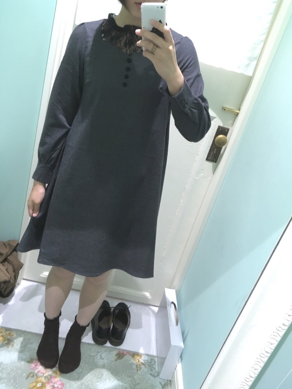 おはつ、F i.n.tさま〜〜🙂 いっつも店舗の前通り過ぎて あ〜〜可愛すぎて着れない って思ってたんですけど この前このワンピースに一目惚れして お買い上げしました幸せ😌💓 あ、髪ばっさり切りました