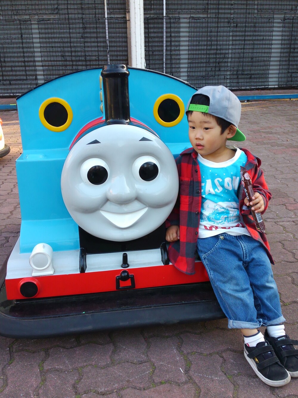 しろくまさんのTシャツ☺ お友だちからのプレゼント❤ とってもかわいい🌟 ありがとー✌ としまえんに遊びに来ました👍 とってもサクラがきれいで楽しかったよー🌄 大好きなトーマスもいたので写真とりまくり~(*´∀`) コイン入れても自分じゃまだ操作できないので急きょママも乗りました! がっ…! 入らない… 髮切らなきゃなー 嫌がるからなぁ💦