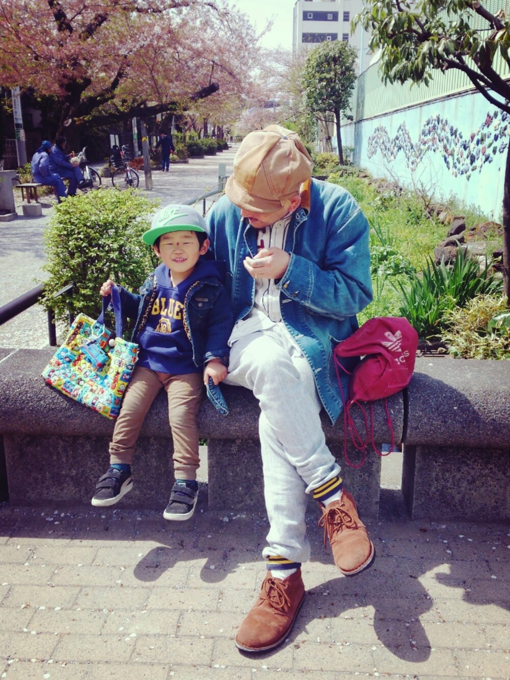 パパとピクニック☺ 眉間のキズが目立ってますが引っ掻きました… かなりの広範囲… マックのトーマスをばぁばお手製のバックにつけてがりんごぼうやのスタイルです🍎 中身もトーマスです🌟 最近バタバタでなかなか皆さんのところに覗きにいくのが遅くてスイマセン💦 インスタよかったら見てみてくださーい🍺