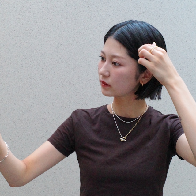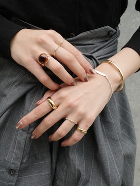165cm / 骨格ナチュラル/ブルベ冬/ボブ シンプル、モノトーン、大人カジュアルなコーディネートが好みです◎ 服装がシンプルなので、アクセサリーがワンポイントになるように組み合わせを考えています♩ シルバーやゴールド問わず、服装に合わせてカラーを選んでいます 基本サイズ💍 親指:11 人差し指:111 中指:11 薬指:9 小指:5 手首周り:13cm