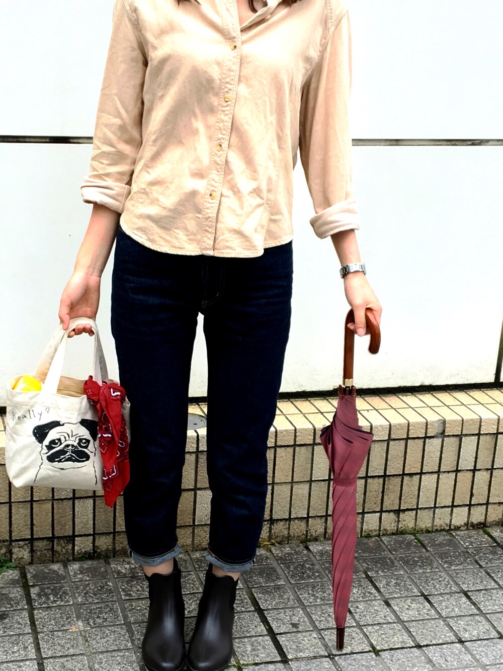 最近雨続きです🌂 鴨脚が目立って恥ずかしい😱 ベージュのシャツに濃いめのパンツを合わせてみました( ´O` ) ショップのお姉さんが流行ってるって…… 本当かな?!w どうしてもこんな色に落ち着いてしまう( ˘ω˘ ) この前、ピンクオレンジのTOPSを試着しましたが 買いきれませんでした_( :⁍ 」 )_ 見てくださってありがとうございます❤ ファッションまだまだ難しい💧