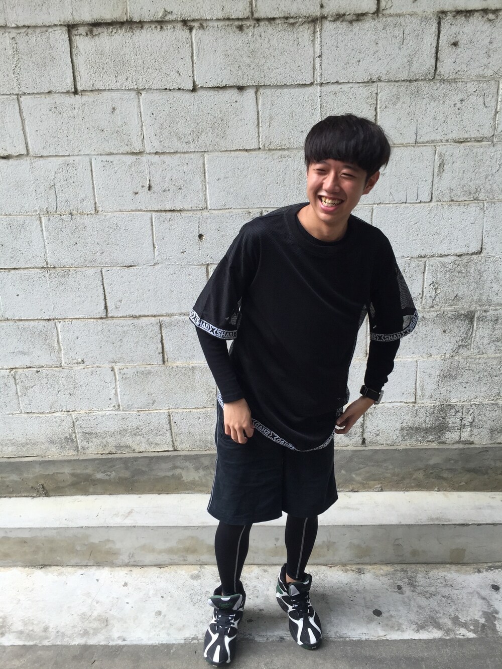 ブラック系のスニーカーを着用したメンズの秋コーディネートの1枚目の写真