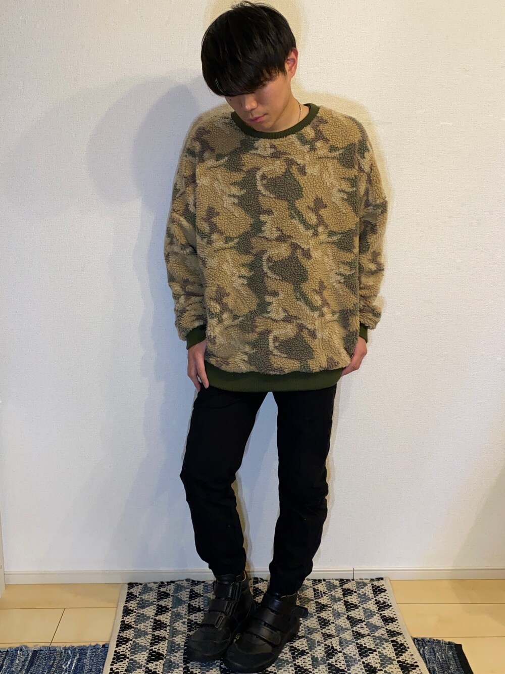 ちょっと室内は暑いけど、 もう少し冬服着ようということで。 夜ならちょうど良くこのまま外出れますね ボリューム感あるトップスなので パンツはタイトめ 且つ、迷彩で柄モノなのでパンツ、 シューズはシンプルにしています。 「迷彩柄」ってかなり種類あるので 色々ググってみると楽しいですよ〜。 ワンパターンは飽きるので、、 USEDのシューズは古着屋購入のもの 本革なのにとっても履きやすい ドイツ軍のジャーマントレーナー(訓練用シューズ)です。