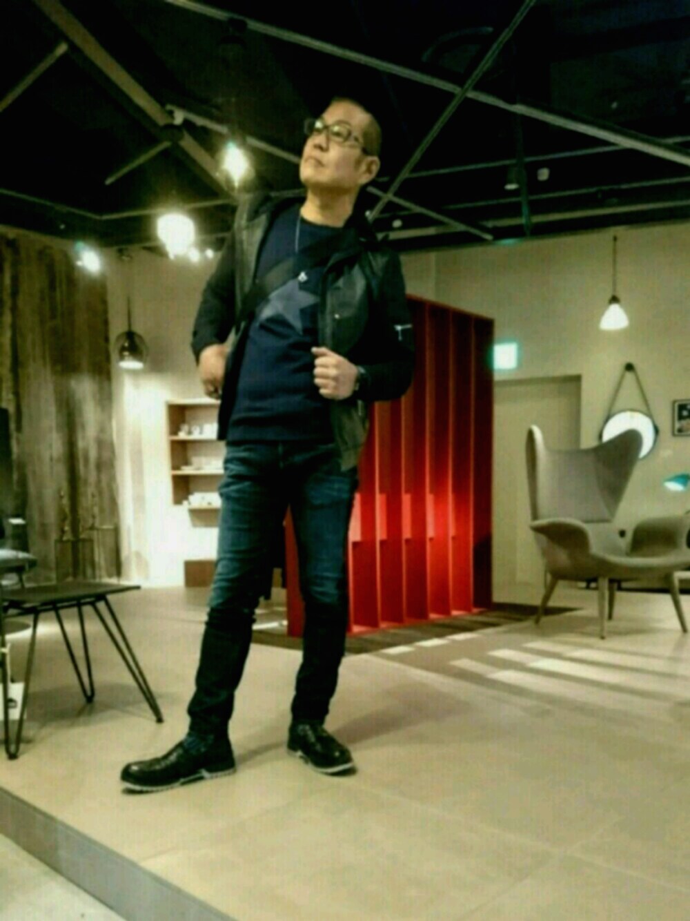 今日は、ネイビーカラーコーデ ほしをアクセントにレザー組合せ メイサイショルダーバッグでアクセント