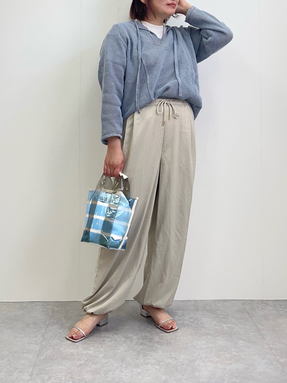 sakai(Trysil ZOZOTOWN)のトートバッグ「ビニールメッシュ編み2wayミニトートバッグ」を使ったコーディネート