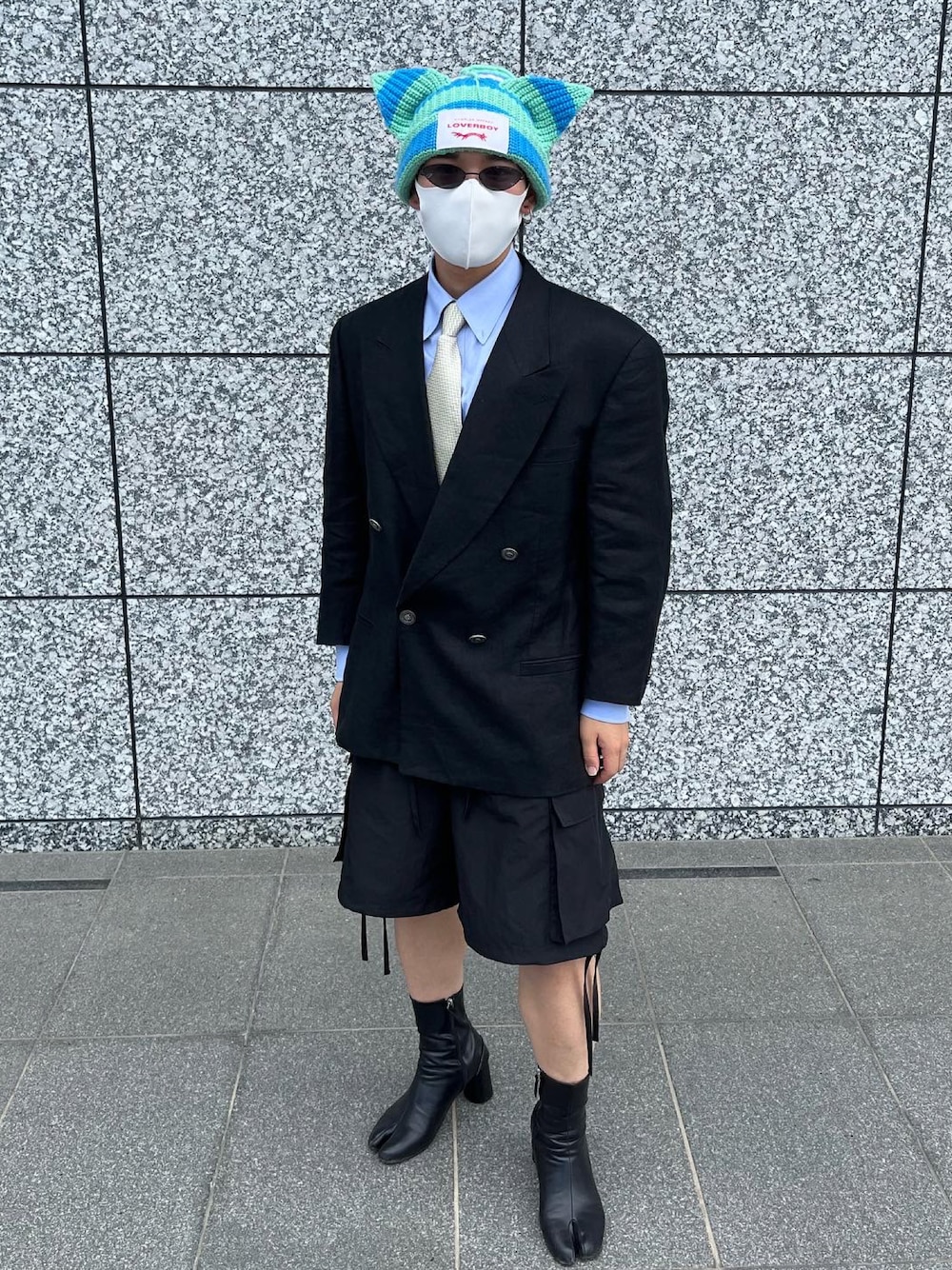 こんにちは!! 全体を黒で統一してカッチリ決めつつ、ビーニー、カーゴのショーツ、ブーツを足袋にする。という点でいい塩梅にカジュアルダウンできたと思います!! インスタフォローお願いします🙇♂️ ⤵︎⤵︎⤵︎⤵︎⤵︎⤵︎⤵︎ ___t0mky アンダーバー3つです