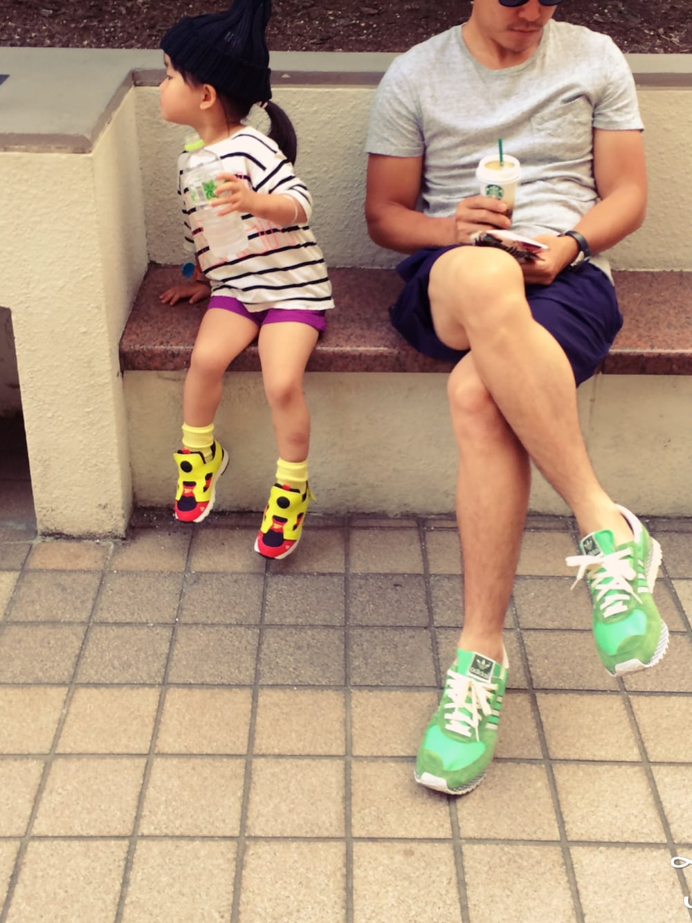 3歳娘コーディネート♪ 娘→リーボック スニーカー 父→jcrew トップス