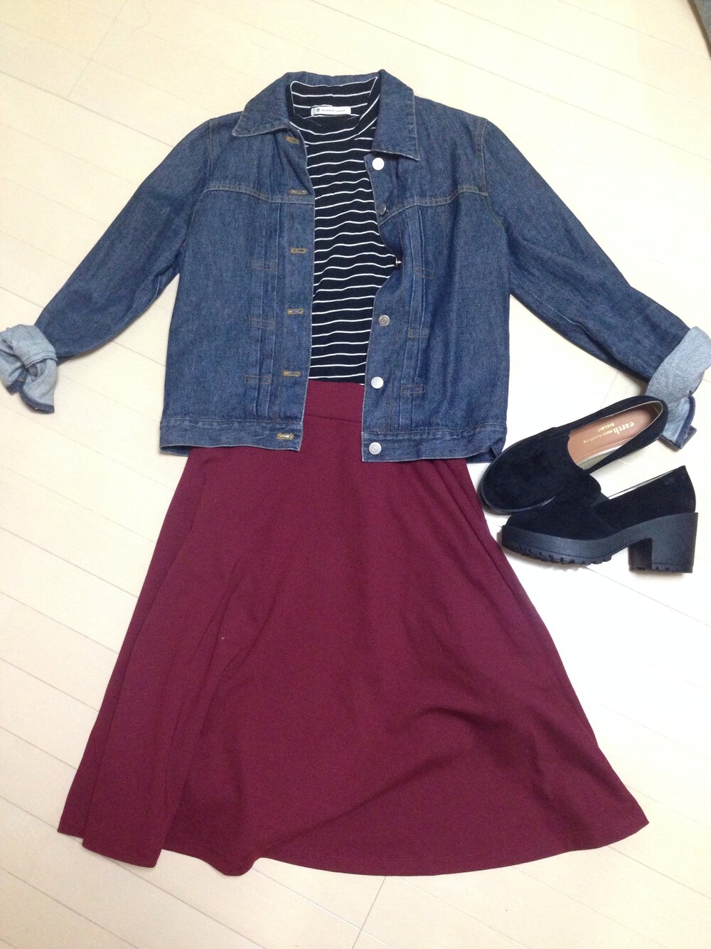 ボーダー・・・マジェスティックレゴン 田中里奈ちゃんのコーデを参考に、真似してみました。 初の赤いスカートだけど、落ち着いた色だからコーデも組みやすい。