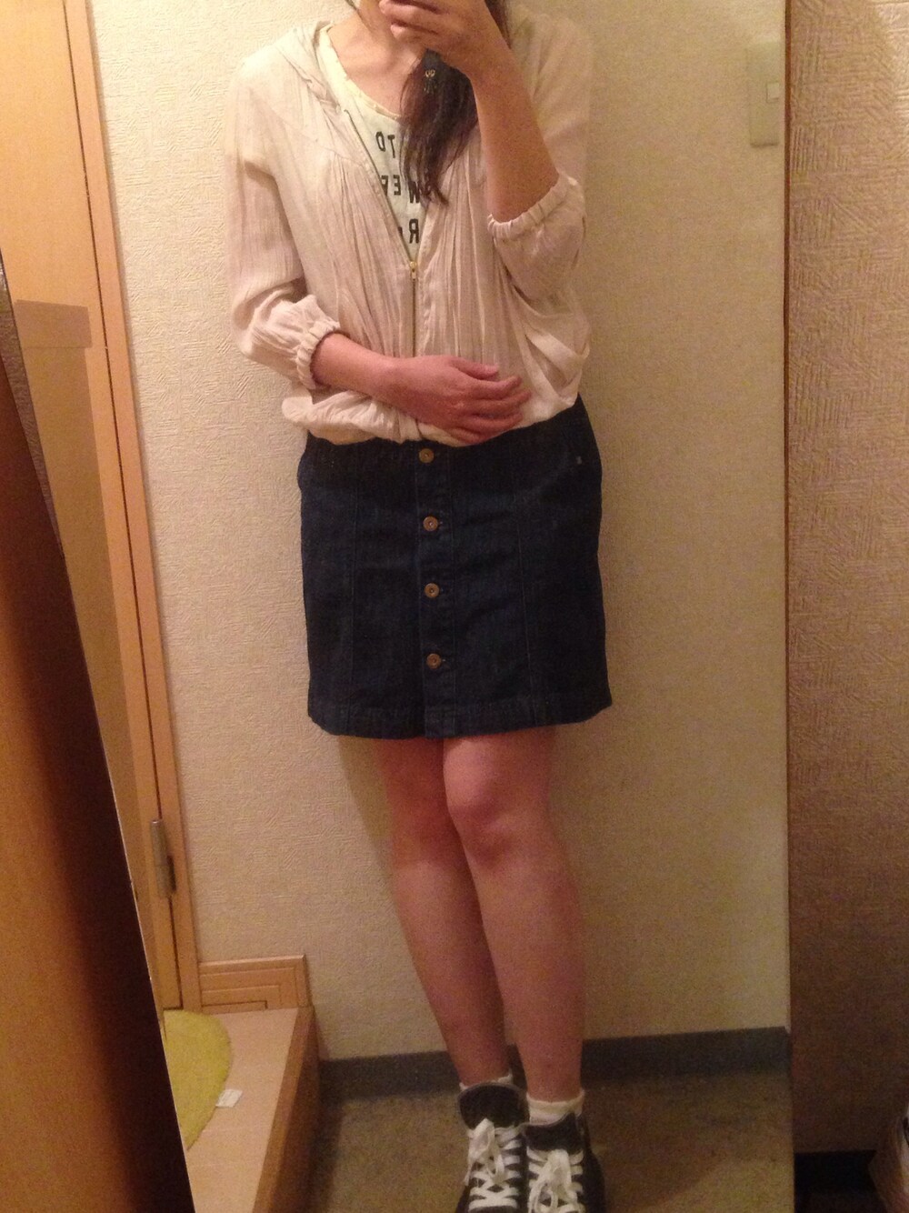お花見に行ったコーデ! 花見の後、夕方の飲み会寒かったから、アウター変えたけど(>_<) 靴下→UM×田中里奈ちゃんコラボ