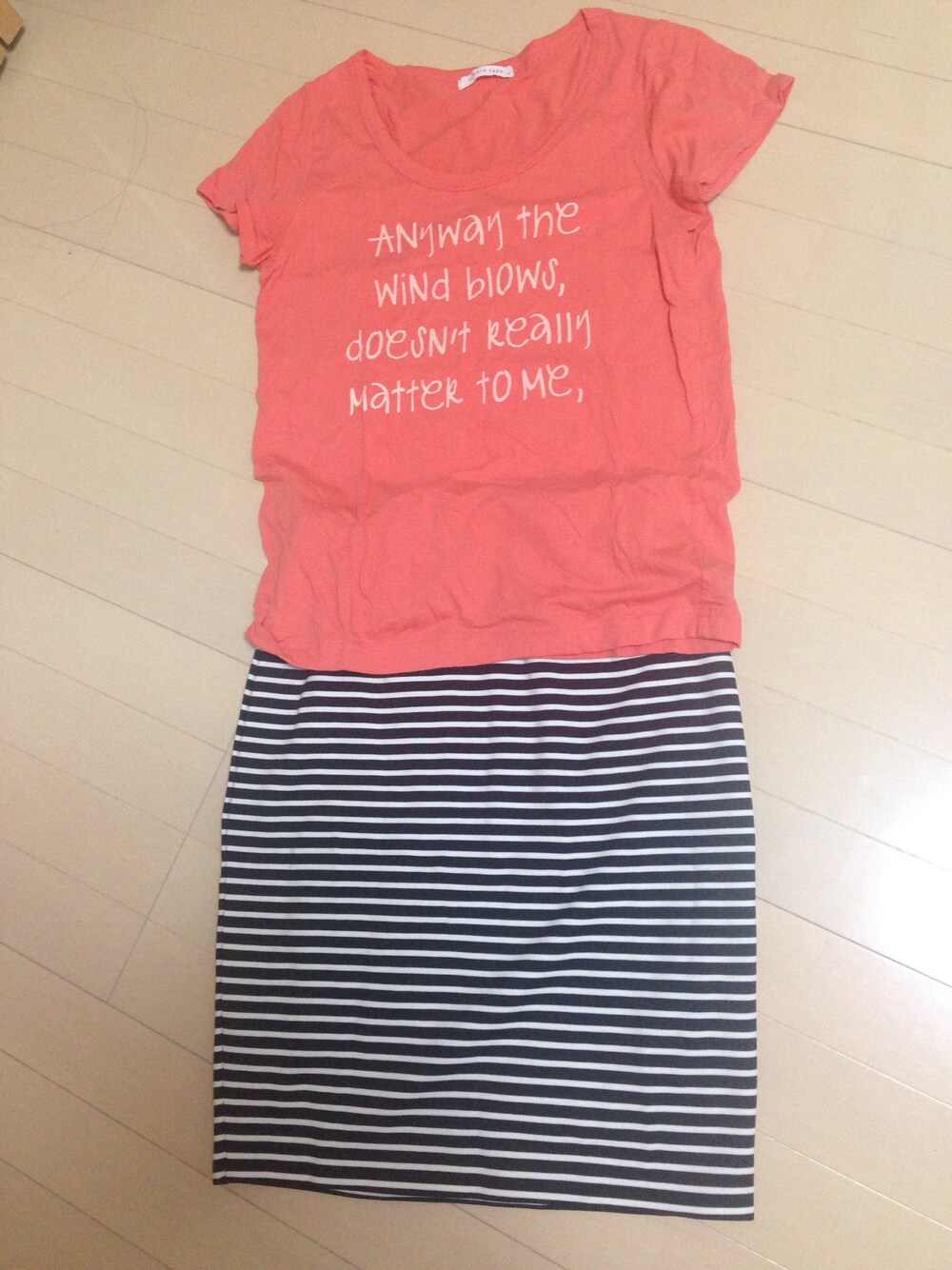 もうひとつ好きなTシャツ。 この色に一目惚れした! ボーダーのスカートの着心地がよくて、試着で即決した♡ これにサンダルで早く出かけたいなぁ。