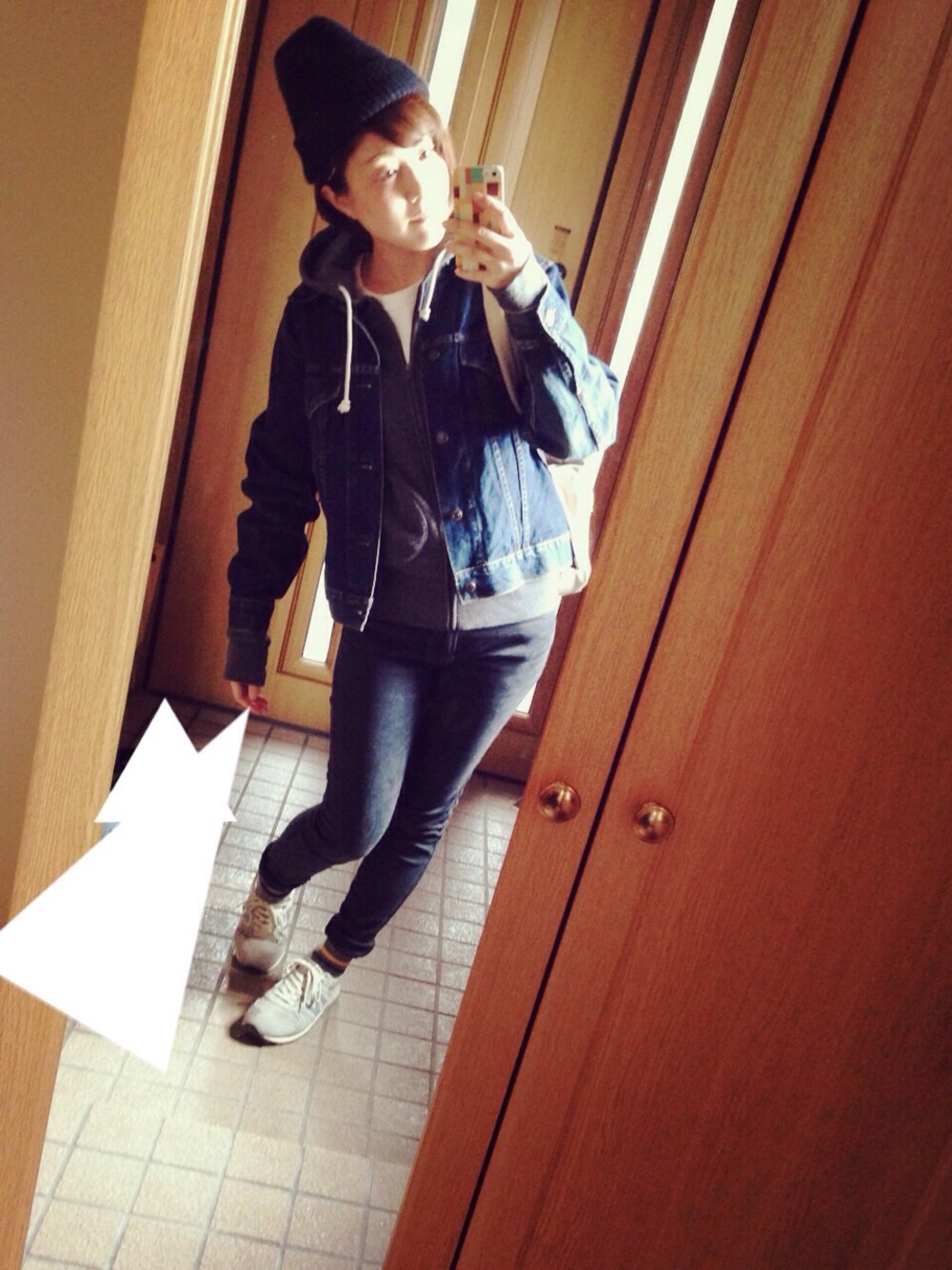 ラフな感じです。 リーバイスのデニムジャケットはユーズドです。 自撮りって難しい。 皆さんどうやってうまく撮ってらっしゃるのかしら