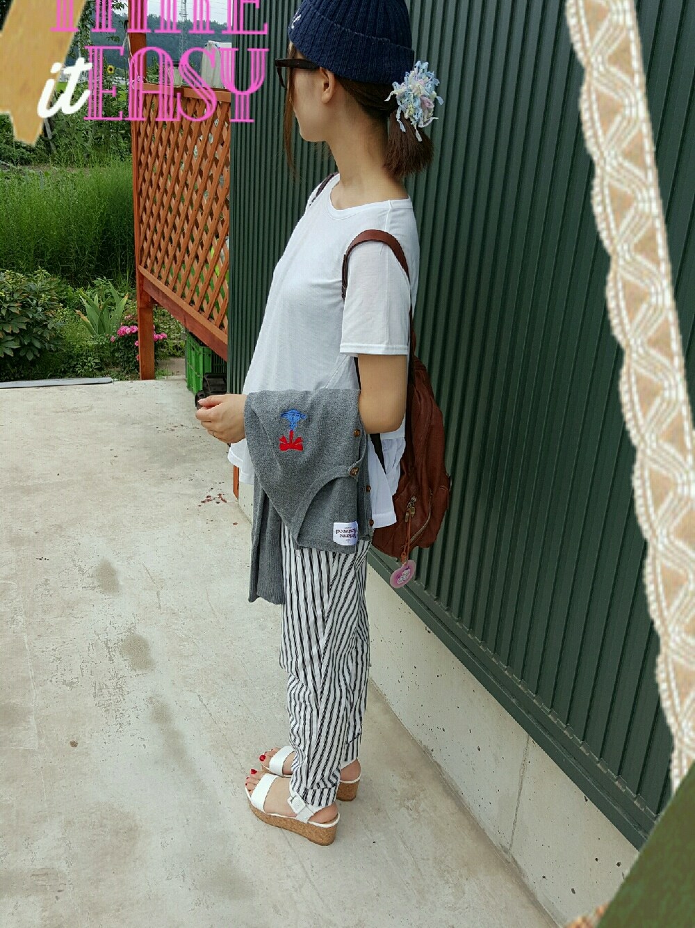 妊婦なのでウエストがゴムのこのパンツわとても重宝します‼ 今日も白を基調にしたので、ポイントにヴィヴィアンガーデを合わせました\(^-^)/