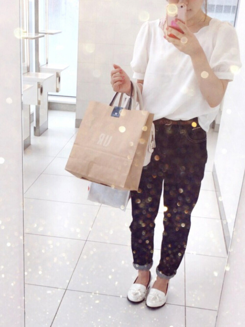夏休みの終わりのおでかけ♡ お気に入りのブラウス♡ デニムはカリフォルニアで着て以来着てなかったけど、ノンウォッシュで綺麗やからホワイトのブラウスに合わせてみた♡