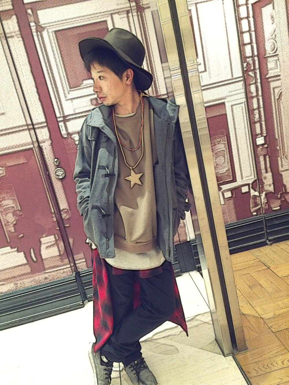彼氏のコーデ♡ ほぼスピンズ。 格安価格での大人買い(´,,•ω•,,) #流行りのハットスタイル。 #原宿系男子