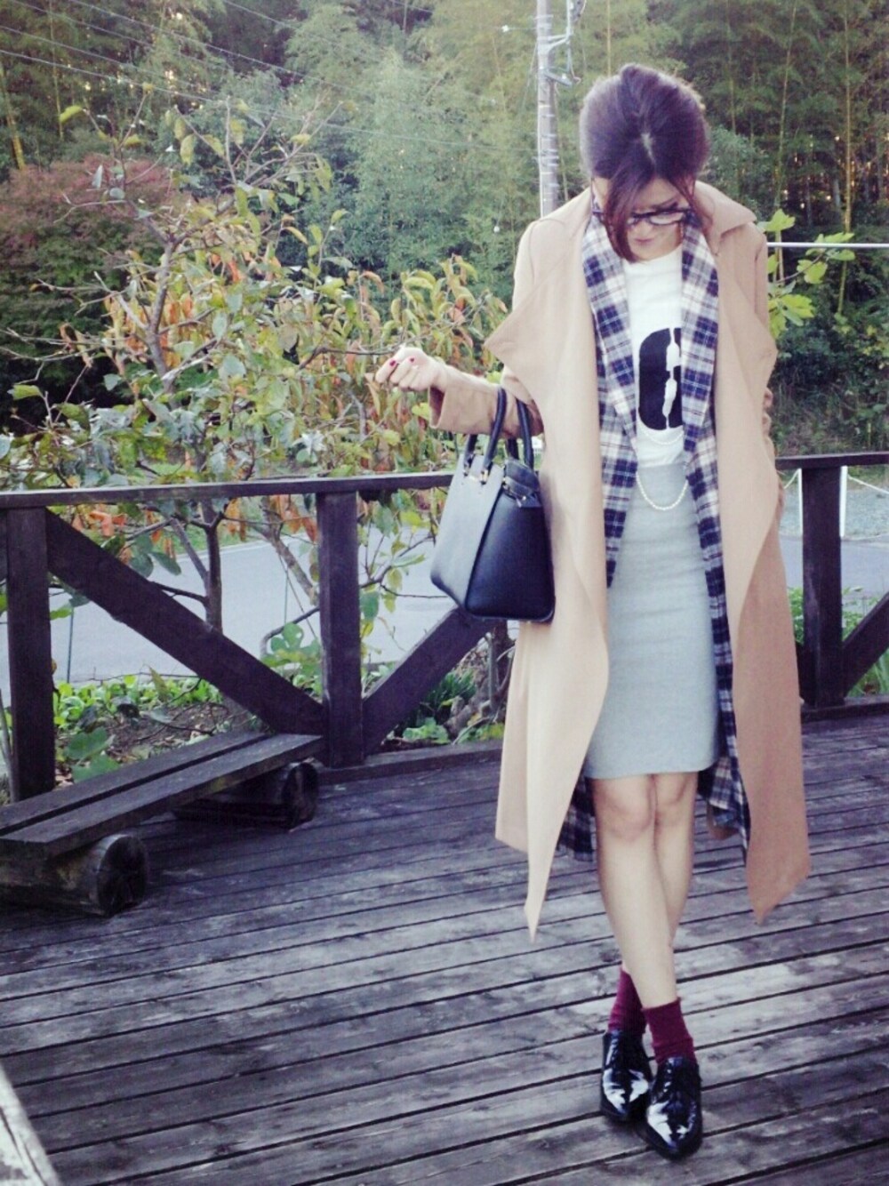 秋のお出掛けコーデ マキシチェックシャツ×マキシトレンチ