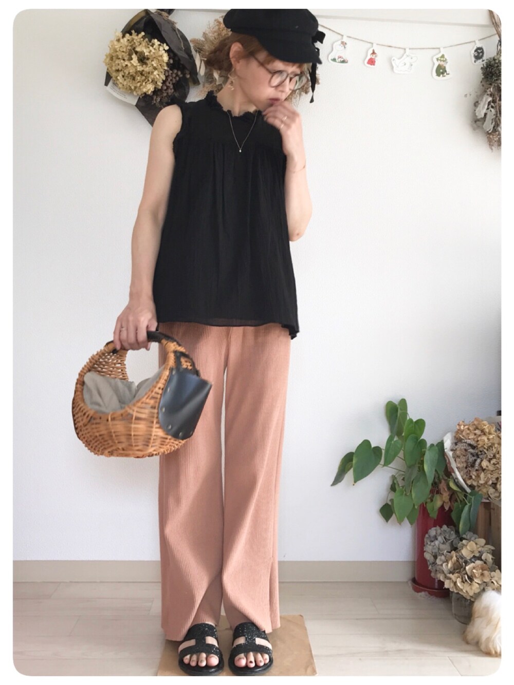 キャメルのリブパンツ👖 真夏に逆戻りしたような暑さでした💦