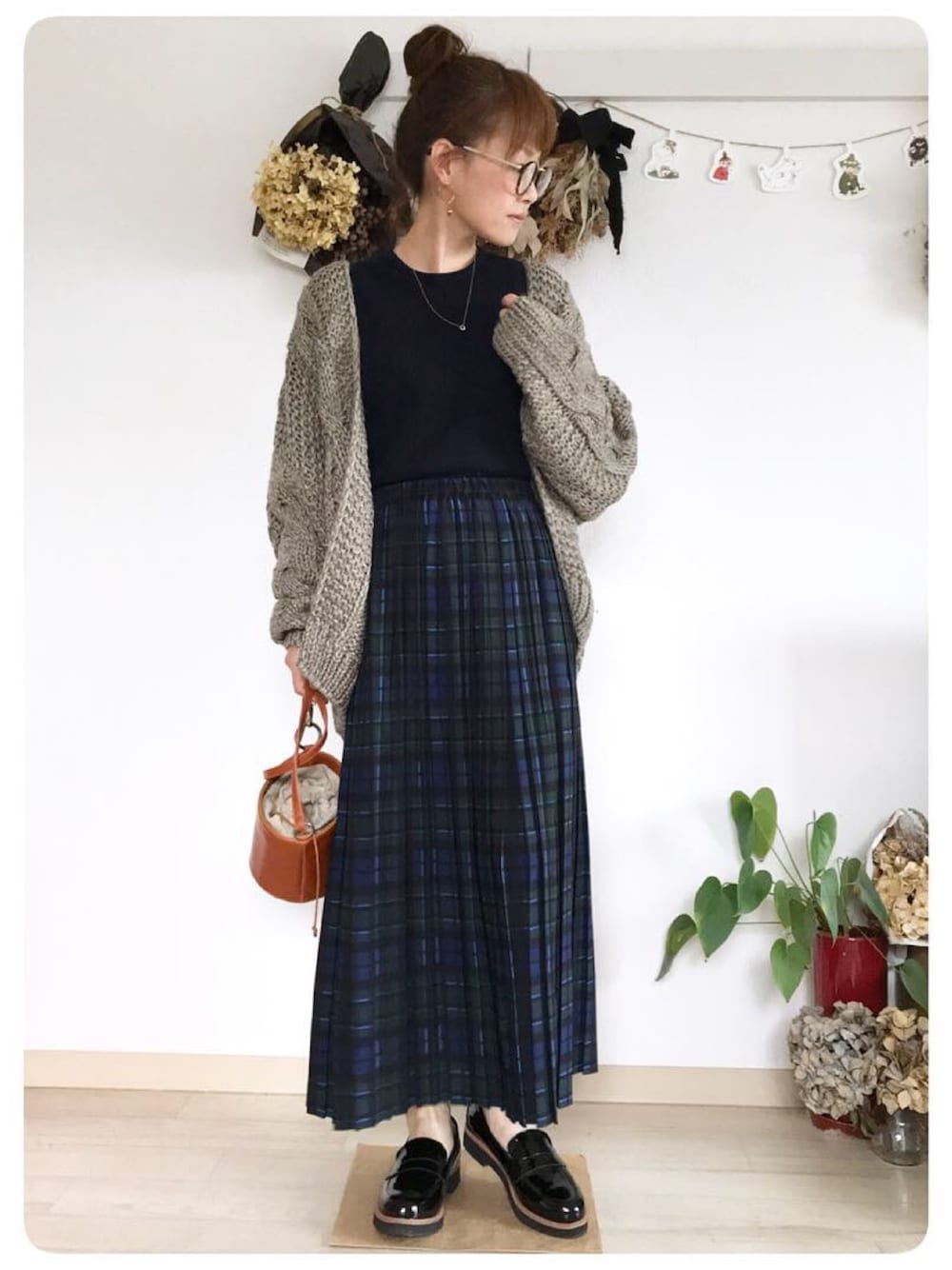 ざっくりケーブルカーディガン♡ 待ちに待ったイエナのチェックのプリーツスカートがやっと届いた♡