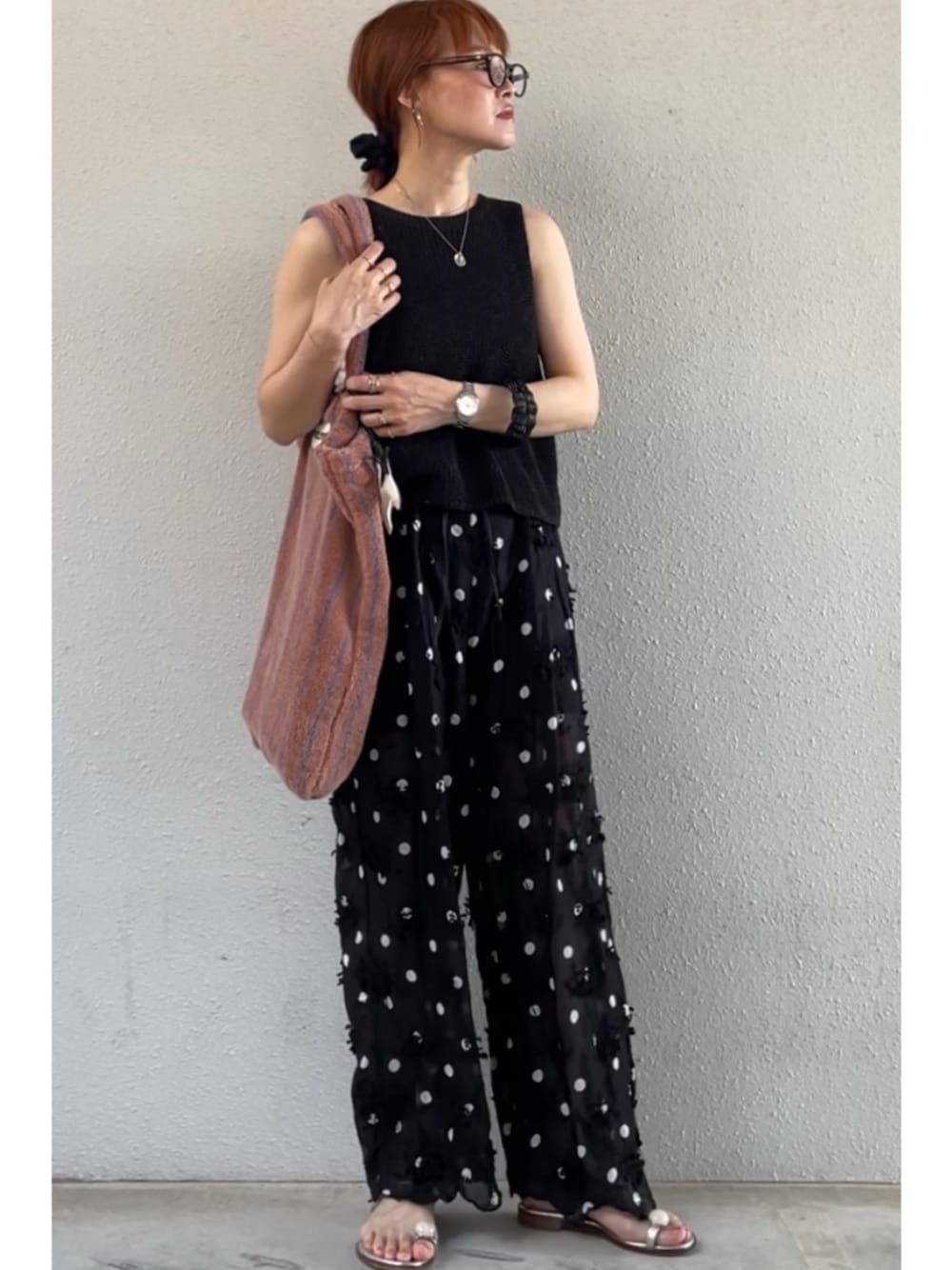 tomoのスラックス「crinkle crinkle crinkle 3D embroidery dot pants CC-2508」を使ったコーディネート