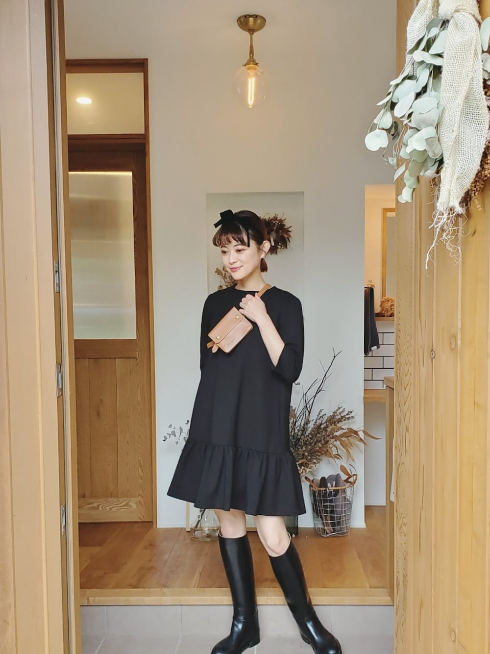 ご覧いただきありがとうございます! 今日は雨だったので長靴のブラックコーデ🖤