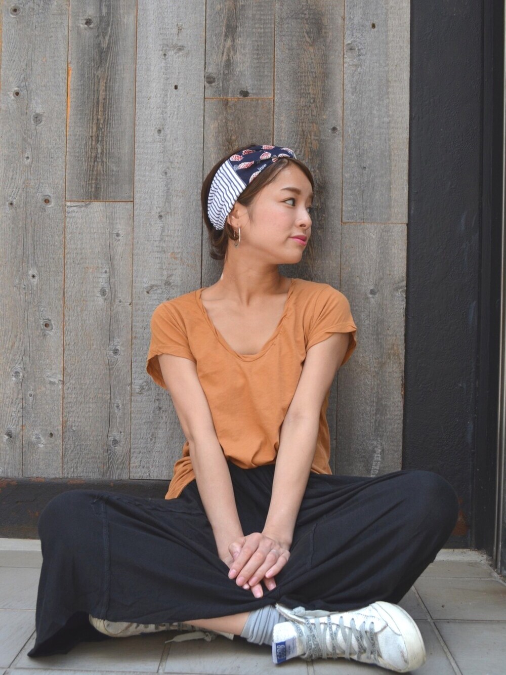 ハンドメイドの柄ヘアバンドが主役のstyling 🎀 シンプルに少し個性をプラス