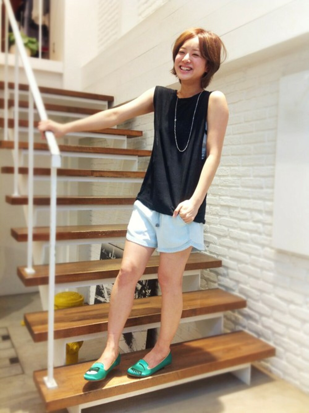 Splendid(スプレンディッド)のショートパンツは、着心地抜群✡✡ サラッとタンクトップと合わせて大人Casualに…♪ 外しアイテムにChiara Ferragni(キアラフェラーニ)のウインクアイズフラットをチョイス…♡