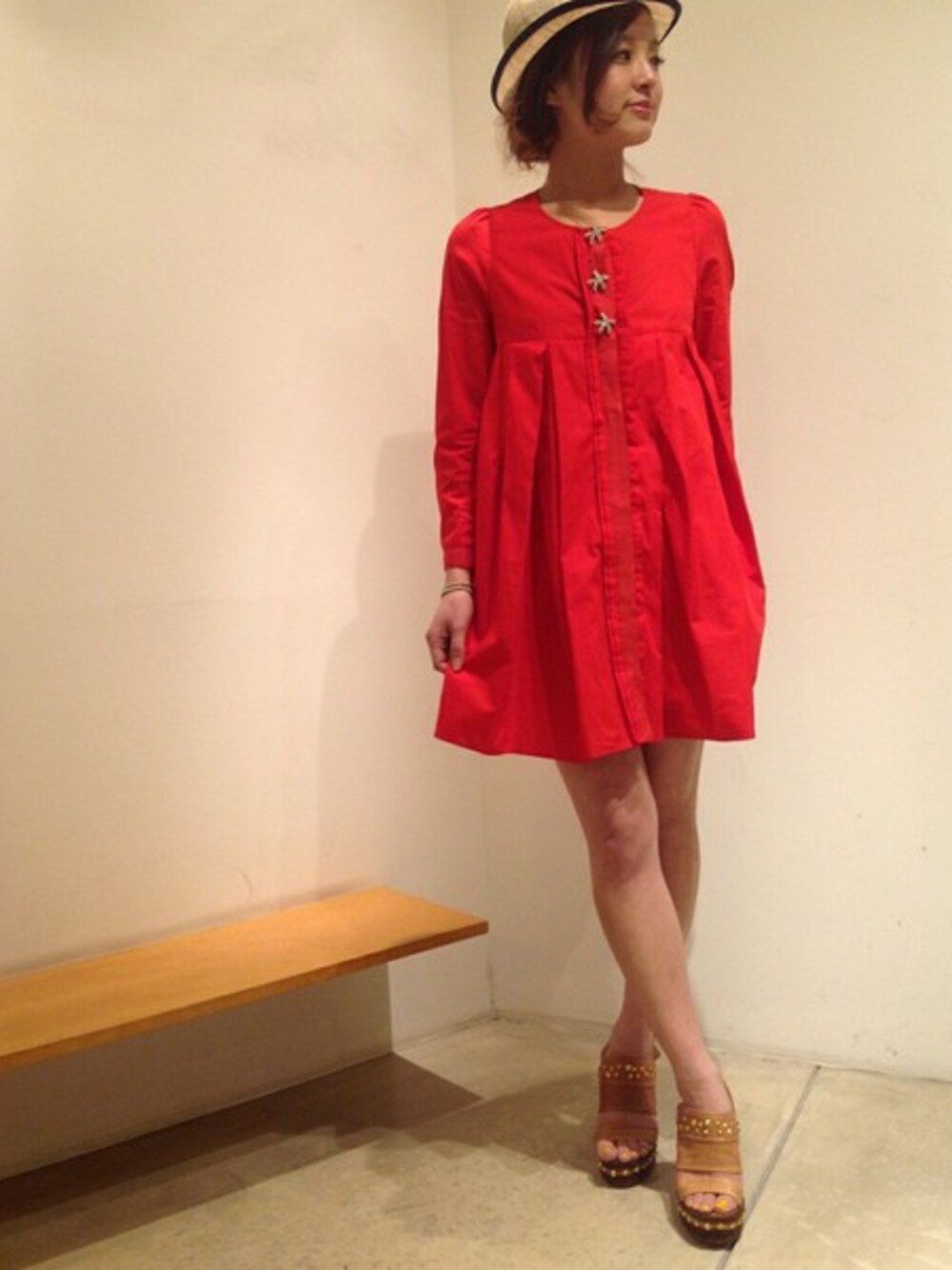 ヒトデのビジューボタンがCute♡なREKISAMI(レキサミ)のコットンブラウス* 今年は冒険して赤をChoiceしました♪ カラー物でも上品にまとまるREKISAMIは店頭でも人気のブランドです◎