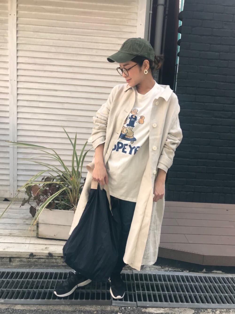 暖かくなってきたので やっとスプリングコートの出番です🌷 これ、早く着たかったー!! ポパイTシャツお気に入りです❤️