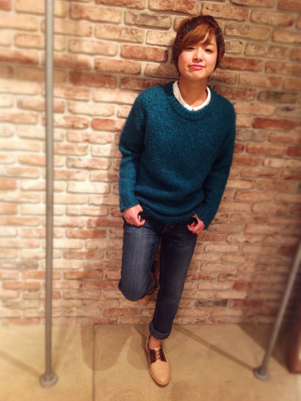 シャツの襟はあえて出さずにメンズライクに...♡ 靴はmiistaのレースアップシューズ♪♪ ピンクベージュ×メタリックが女度を+してくれます!!