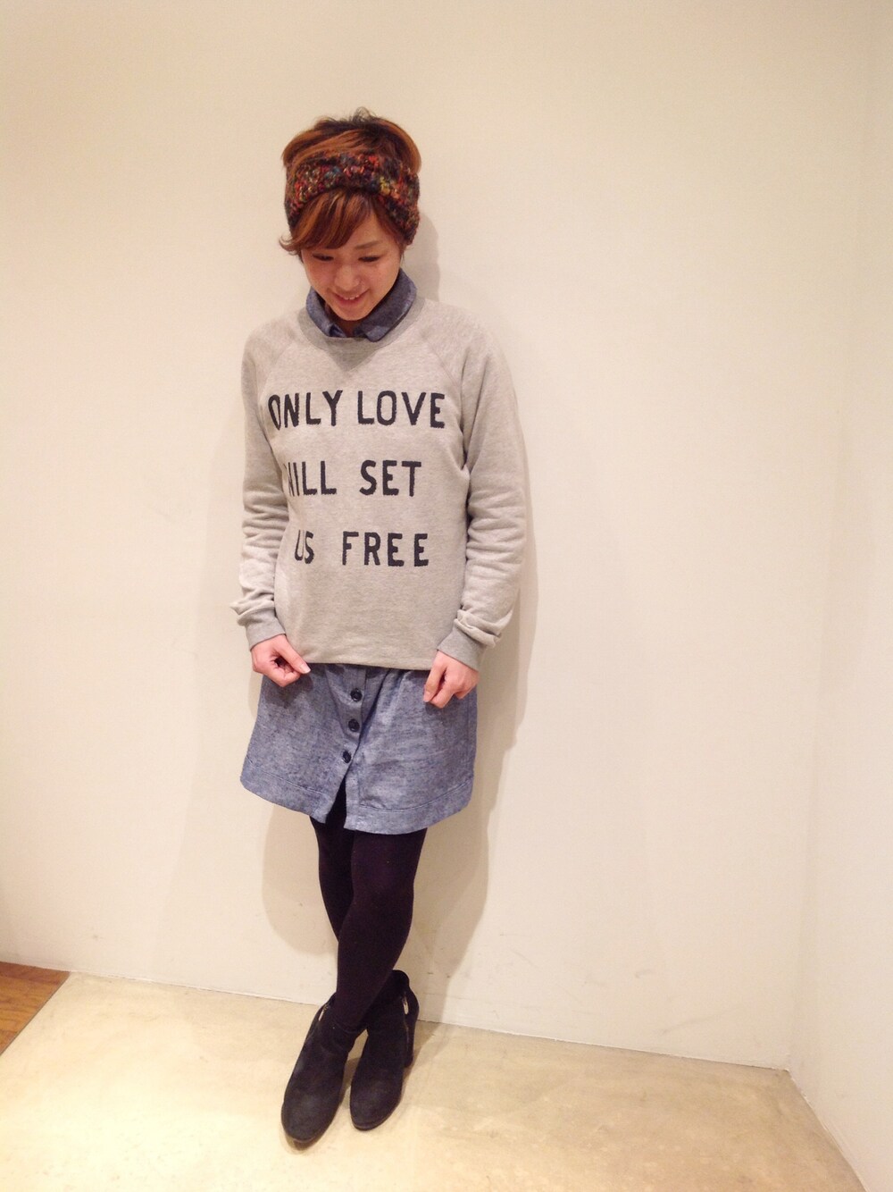 Caie(カイエ)のシャツワンピをロゴトレーナーにIN✡ OLD BETTYS(オールドべティーズ)のニットヘアバンドでカラーをプラスしました❁❁