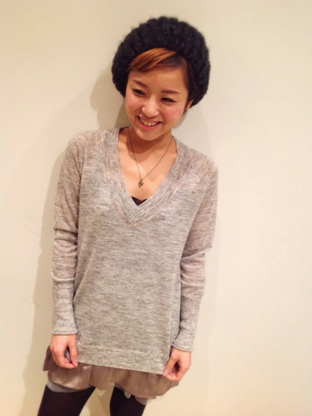 tordi(トルディ)のニットは、薄手なのでオールシーズン使えるのがgood♬* 裾のチュールをアウターからチラ見せしたい…♡ Vネックが深めなので、レースキャミをINしたのがポイントです✴︎