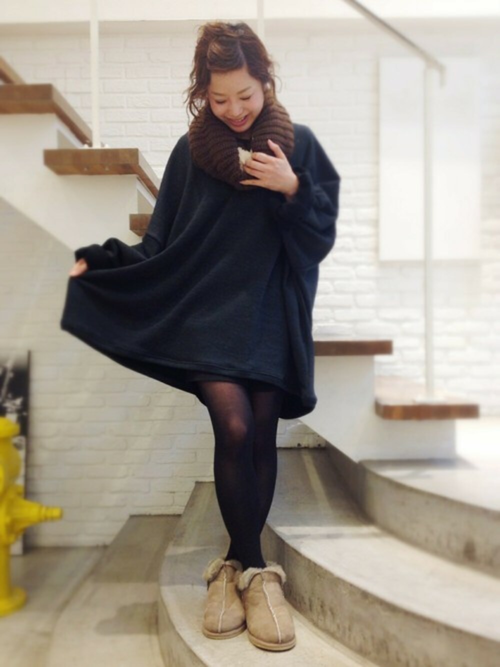 Caie(カイエ)の裏毛ワンピースは、ビッグシルエットなので、 小柄な人はワンピースに、身長の高い人はチュニックに** 生地も柔らかく、アウターも羽織れるので 冬も大活躍....♬