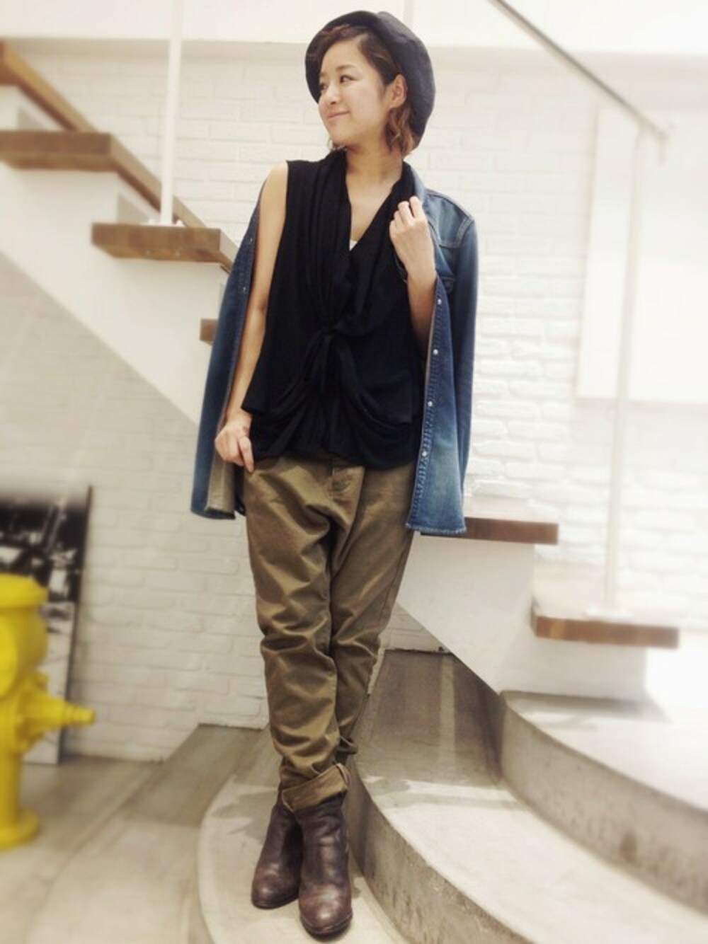 この時期インナーに大活躍のCaie(カイエ)のレイヤードノースリブラウス❤︎‼︎ ワークパンツ、デニムシャツでカジュアルダウン♩♬