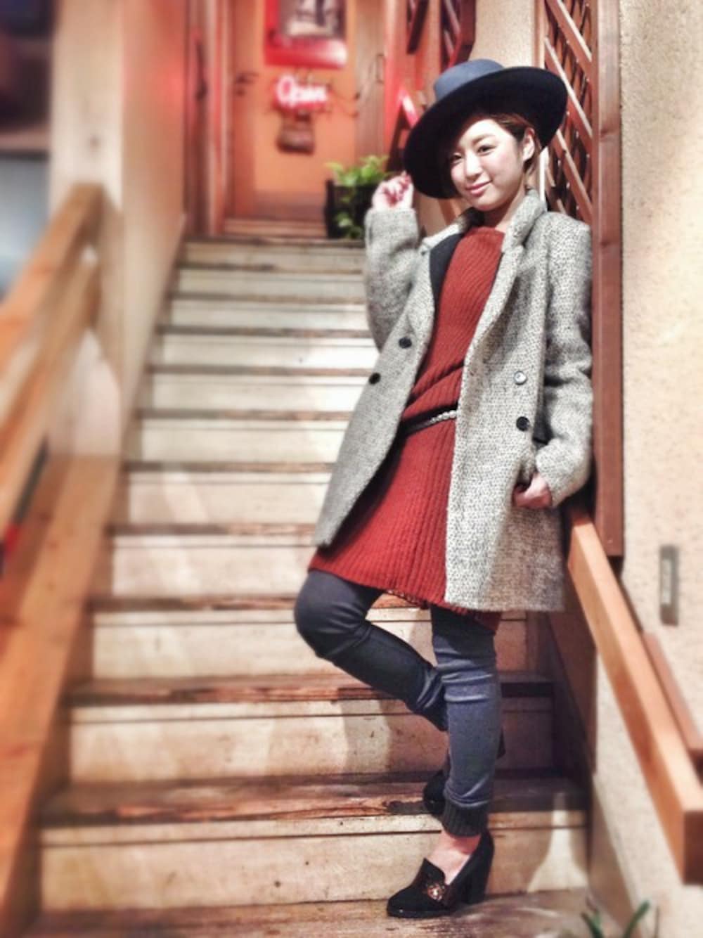 カラーが可愛いSanny (サニー) モヘアニットワンピース♡ つば広HATとチェスターコートで旬のstylingに…♪