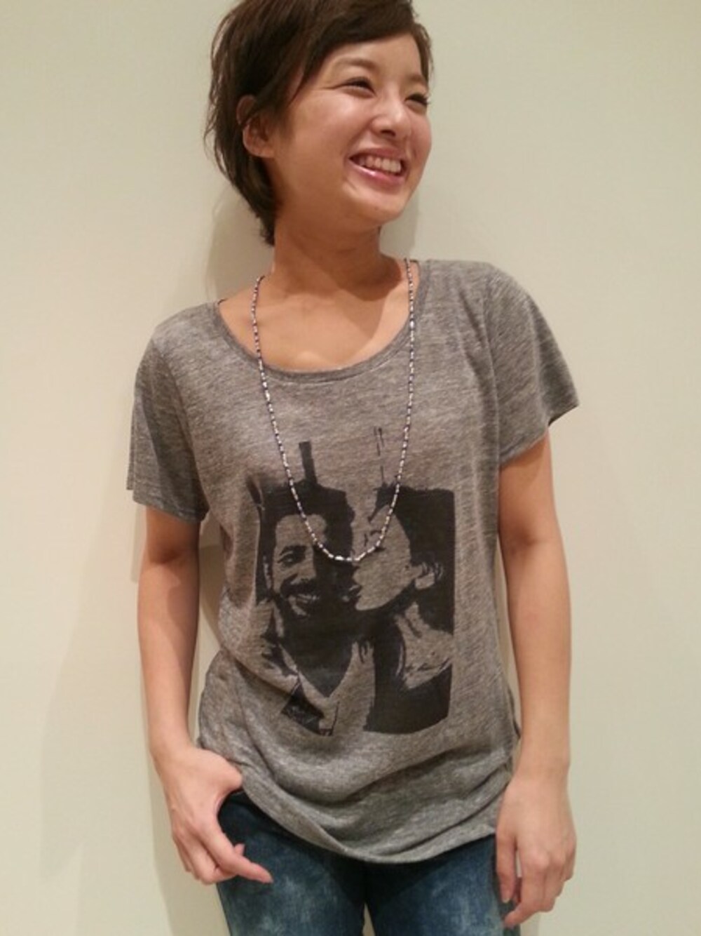 CANALJEAN tomoeのTシャツ/カットソー「転写プリントTシャツ(H.Grey)」を使ったコーディネート