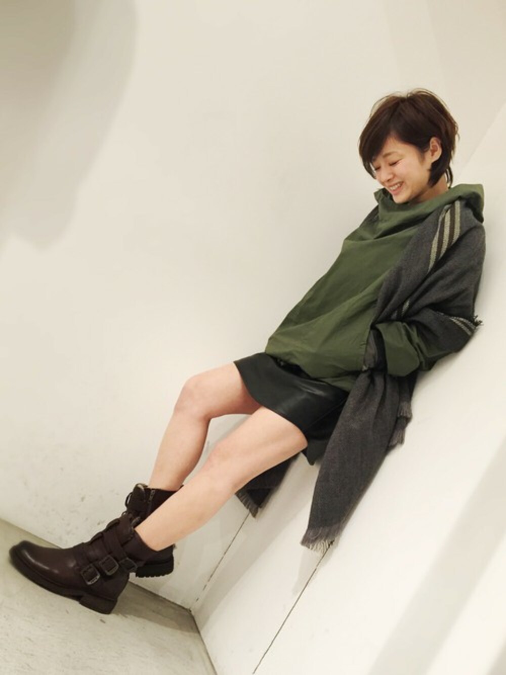 カーキ×ブラックでメンズライクにstyling✴︎ KIL(キル)のストールをプラスしてコーディネートのPOINTにしました♡
