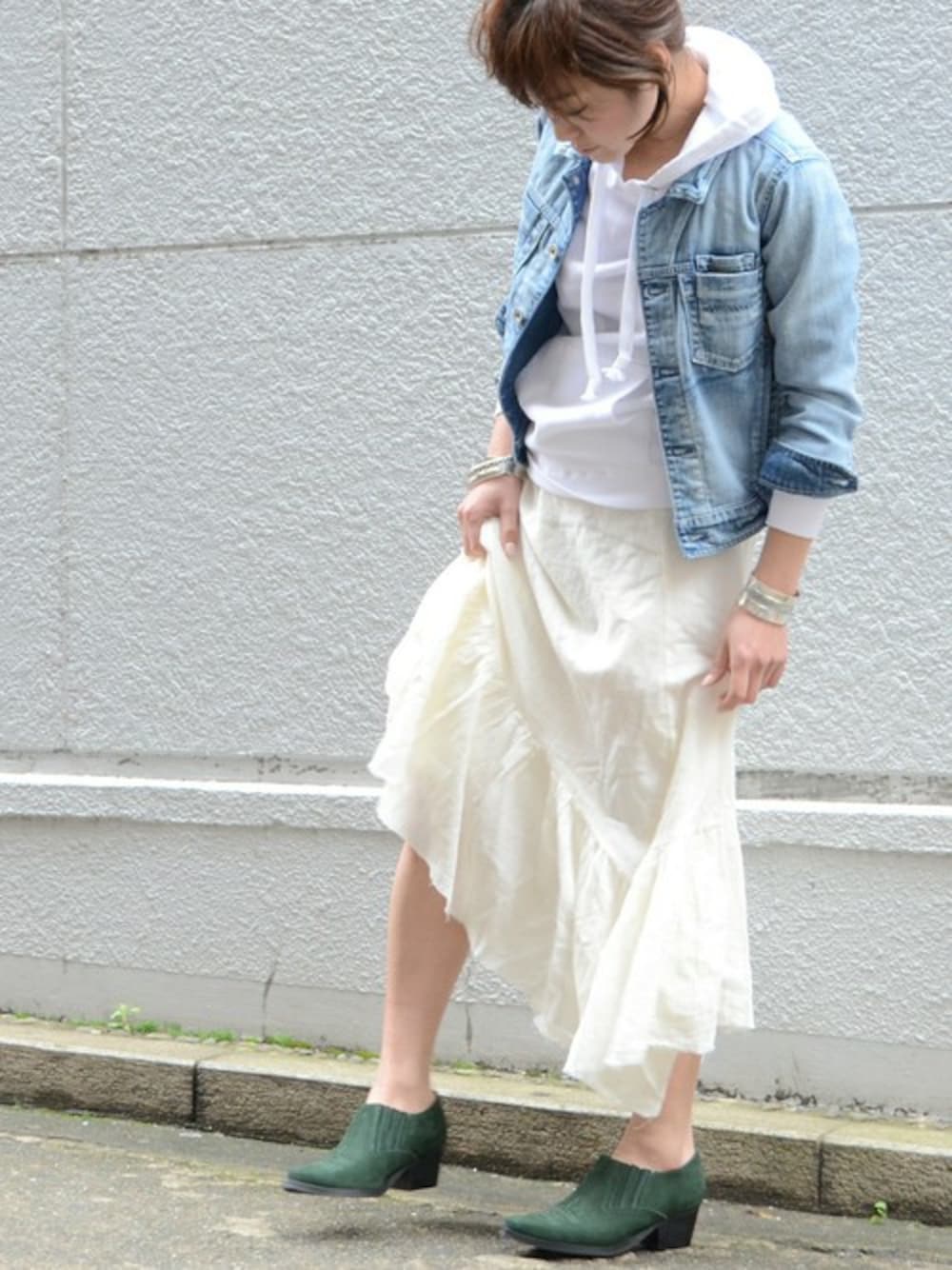 メンズっぽいコーデがスキだけど、たまには履きたいロングスカート* Gジャン×パーカーで カジュアルな合わせが落ち着きます...♡