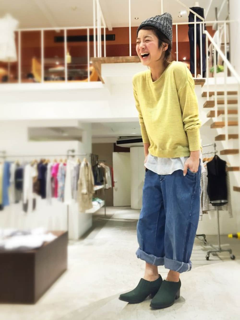 暖かくて天気が良い日は yellowが着たくなる♡ 足元にはgreen…*