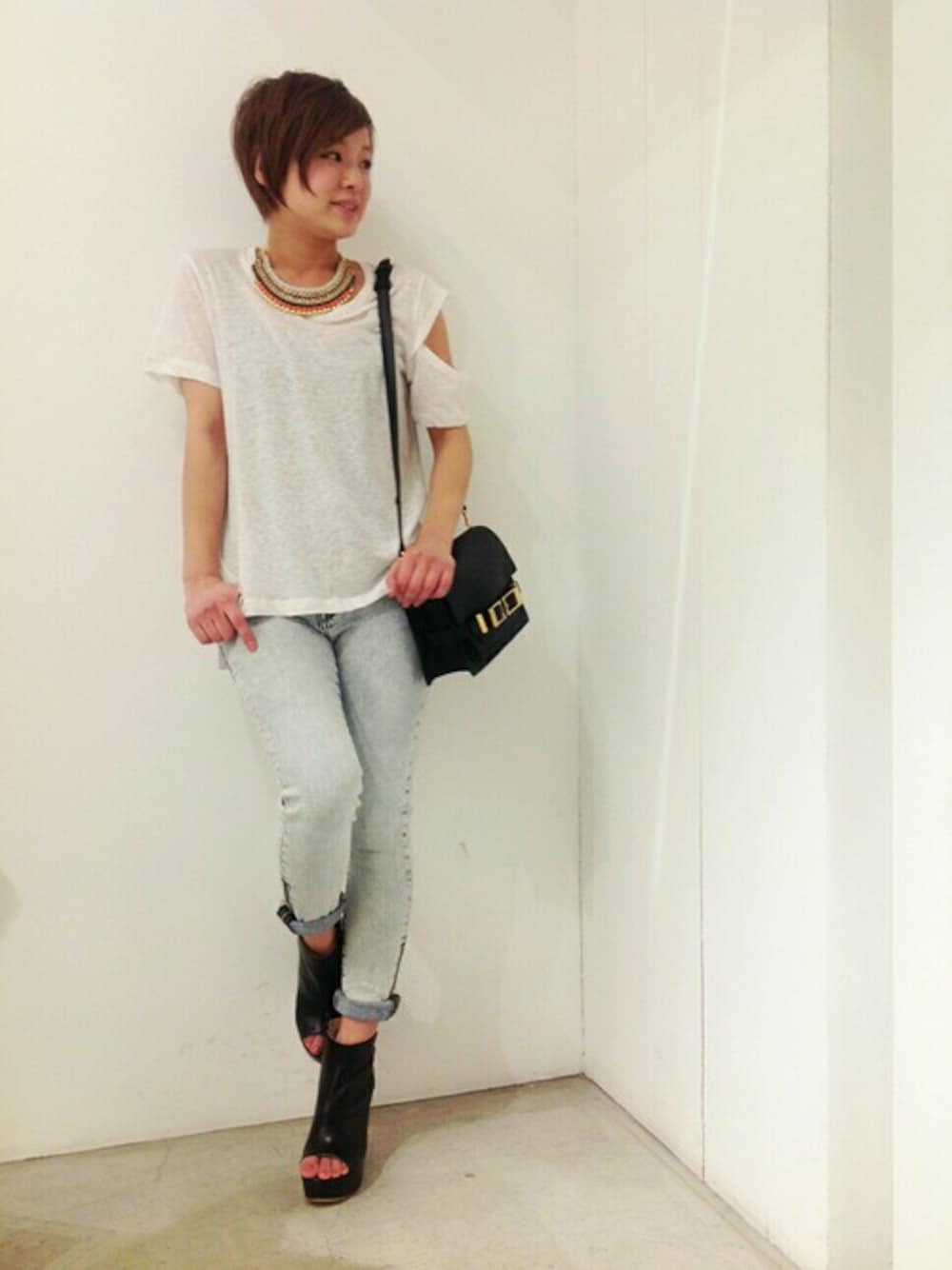 CANALJEAN tomoeのTシャツ/カットソー「LNA デザインTシャツ/エルエヌエー 」を使ったコーディネート