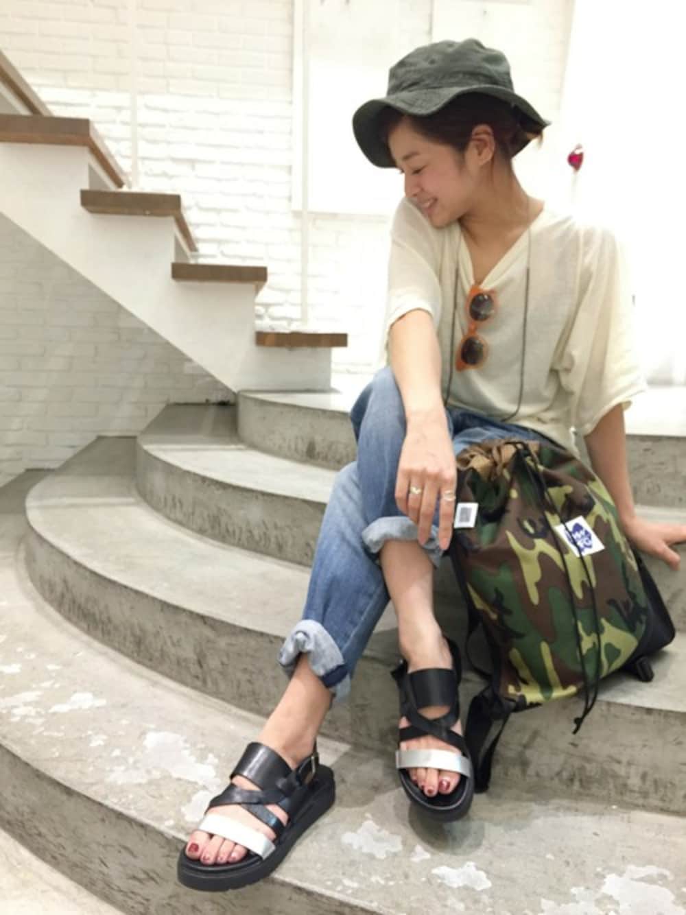 CANALJEAN tomoeのサンダル「KAREN LIPPS(カレンリップス) バックストラップペタサンダル」を使ったコーディネート