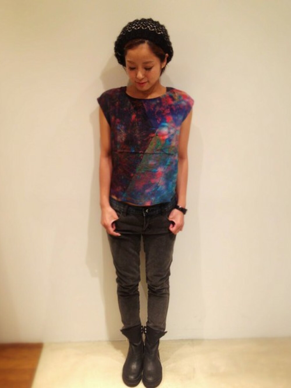 短めの袖丈と、詰まったネックラインが今年らしくて新鮮な FUNKTIONAL(ファンクショナル)のタンクトップ* インパクトのある柄がモード感たっぷりのitemです◎ スキニーパンツに合わせて、COOLなイメージでまとめました*
