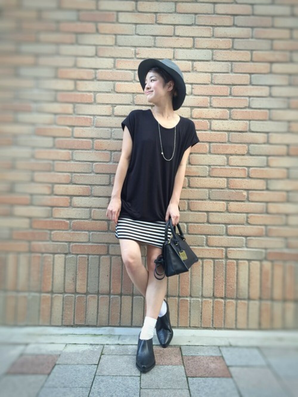 チュニックからチラッとボーダーのスカートがpoint❤️
