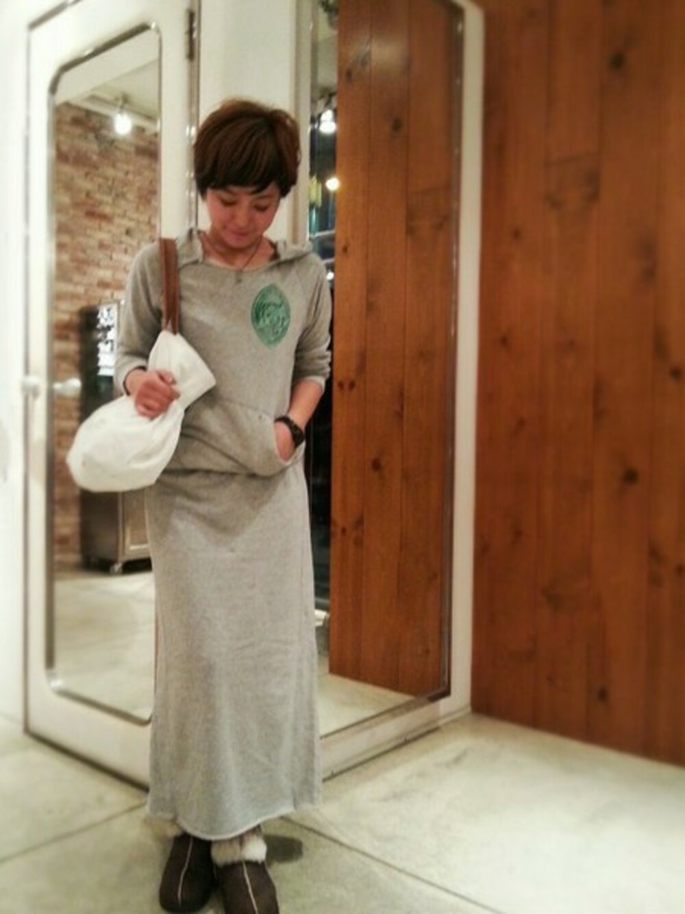 今の時期にjustな素材感が魅力のNoekoln(ノイケルン)のスウェットワンピース* これだけでサマになるので、秋のお出かけや旅行に最適*** SHEPHERD(シェパード)のシープスキンのブーツを合わせてリラックスカジュアルに♡ 短めの丈のピーコートやレザージャケットを上から羽織ると冬にもO.Kです◎