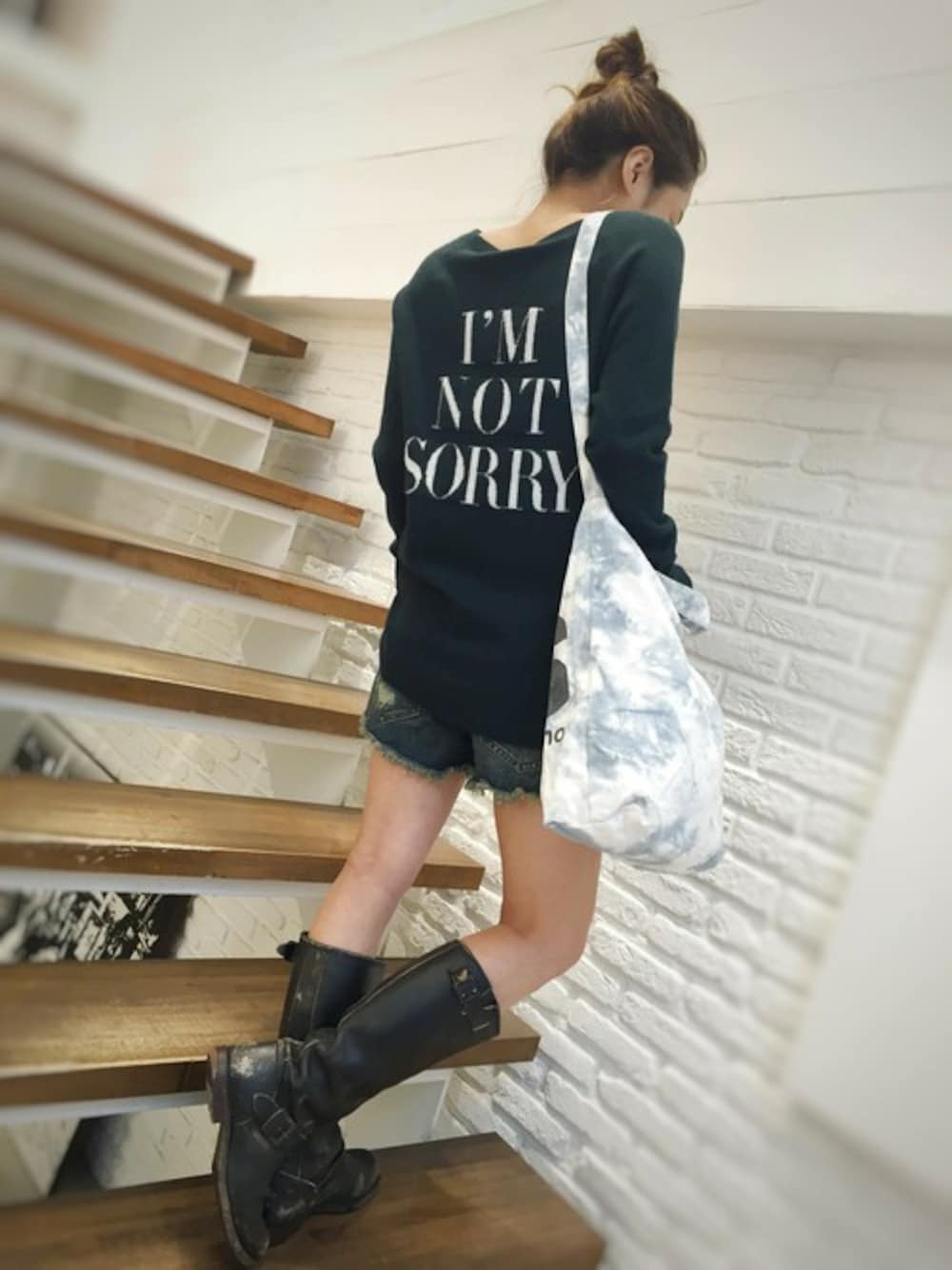 バックプリントが可愛い PAM&GELA(パム&ゲラ)のロゴニット ショートパンツにロングブーツで合わせて…♡