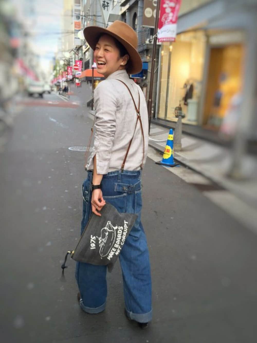 CANALJEAN tomoeのクラッチバッグ「1975 tokyo MIKE BOARDS クラッチバッグ」を使ったコーディネート