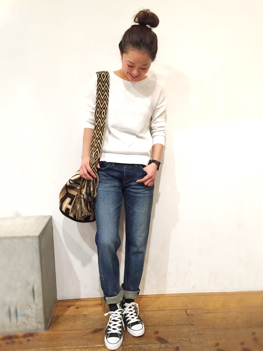 シンプルなコーディネートには ポイントになる小物をチョイス☺︎