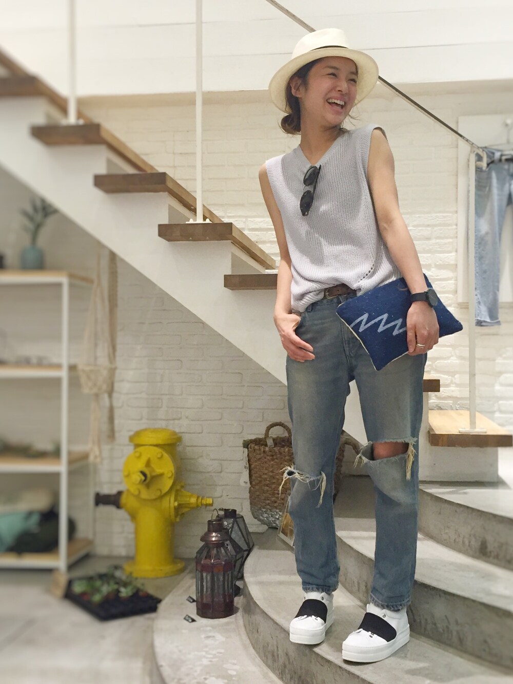 CANALJEAN tomoeのタンクトップ「RED CHOP WORKS (レッドチョップワークス) ニットベスト」を使ったコーディネート
