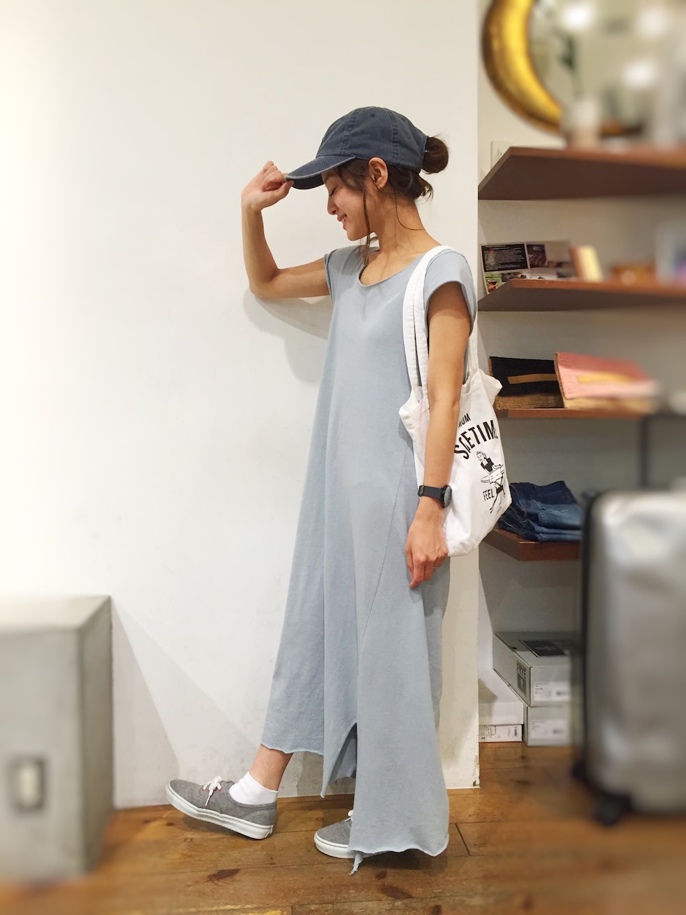 ブルーグレーのcolorが爽やかなワンピース😊 155センチの私でもぴったりの丈感が嬉しい❤️