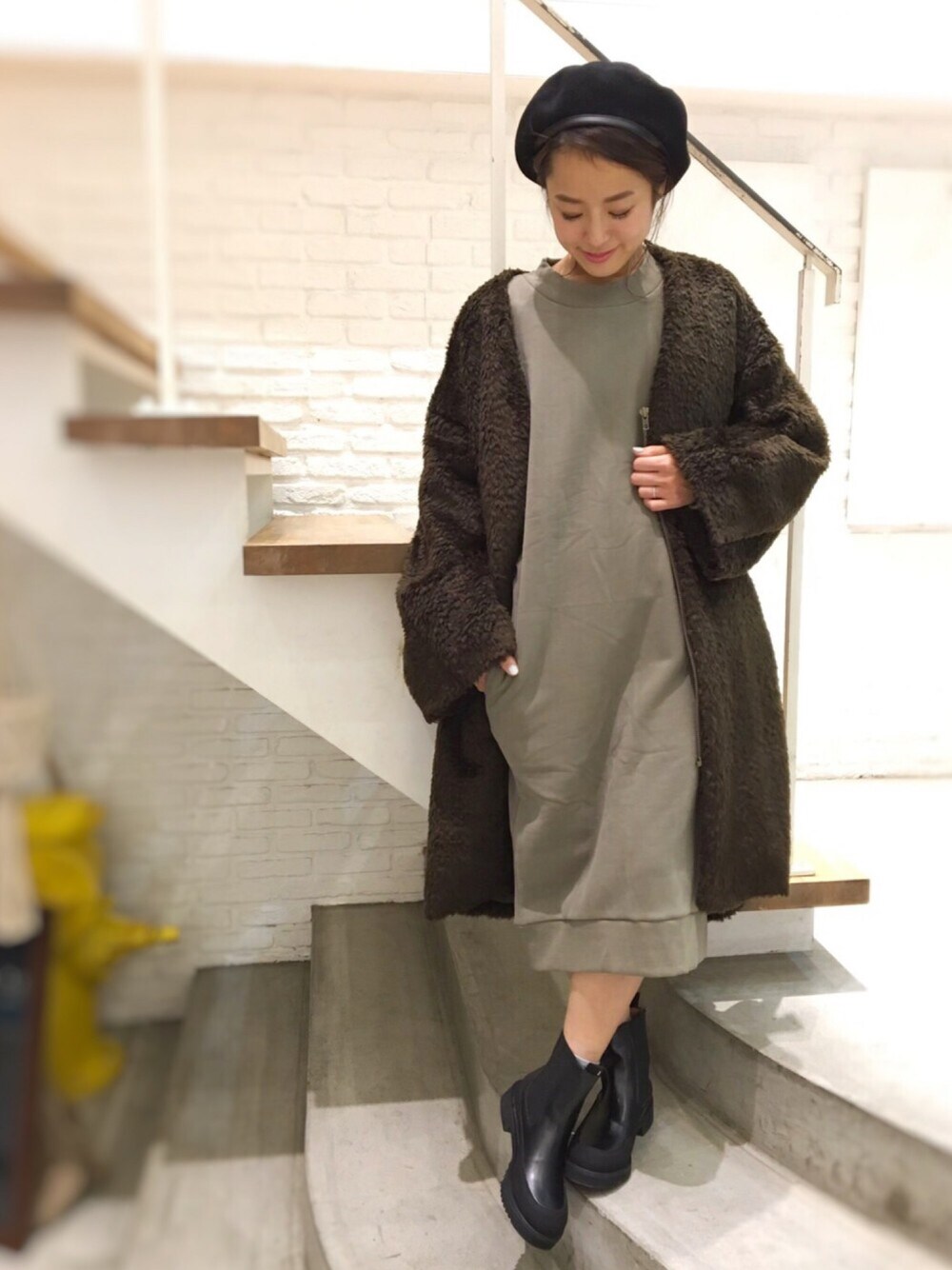 ビッグシルエットが可愛すぎるワンピとコート🐈…❤️❤️ 小物はblackで引き締めて♫♫